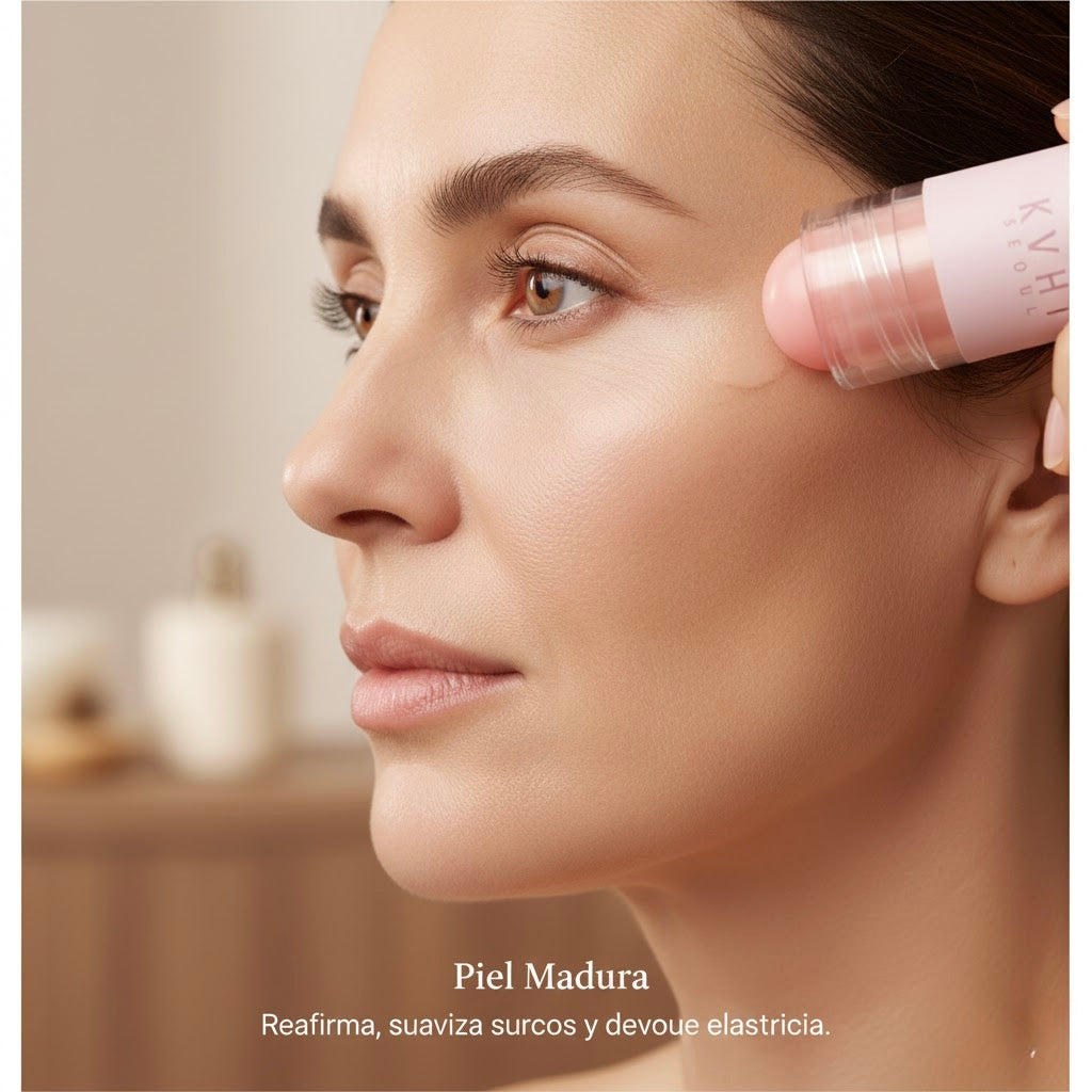 KAHI funciona en todas las edades y tipos de piel, mejorando líneas, elasticidad y brillo natural.