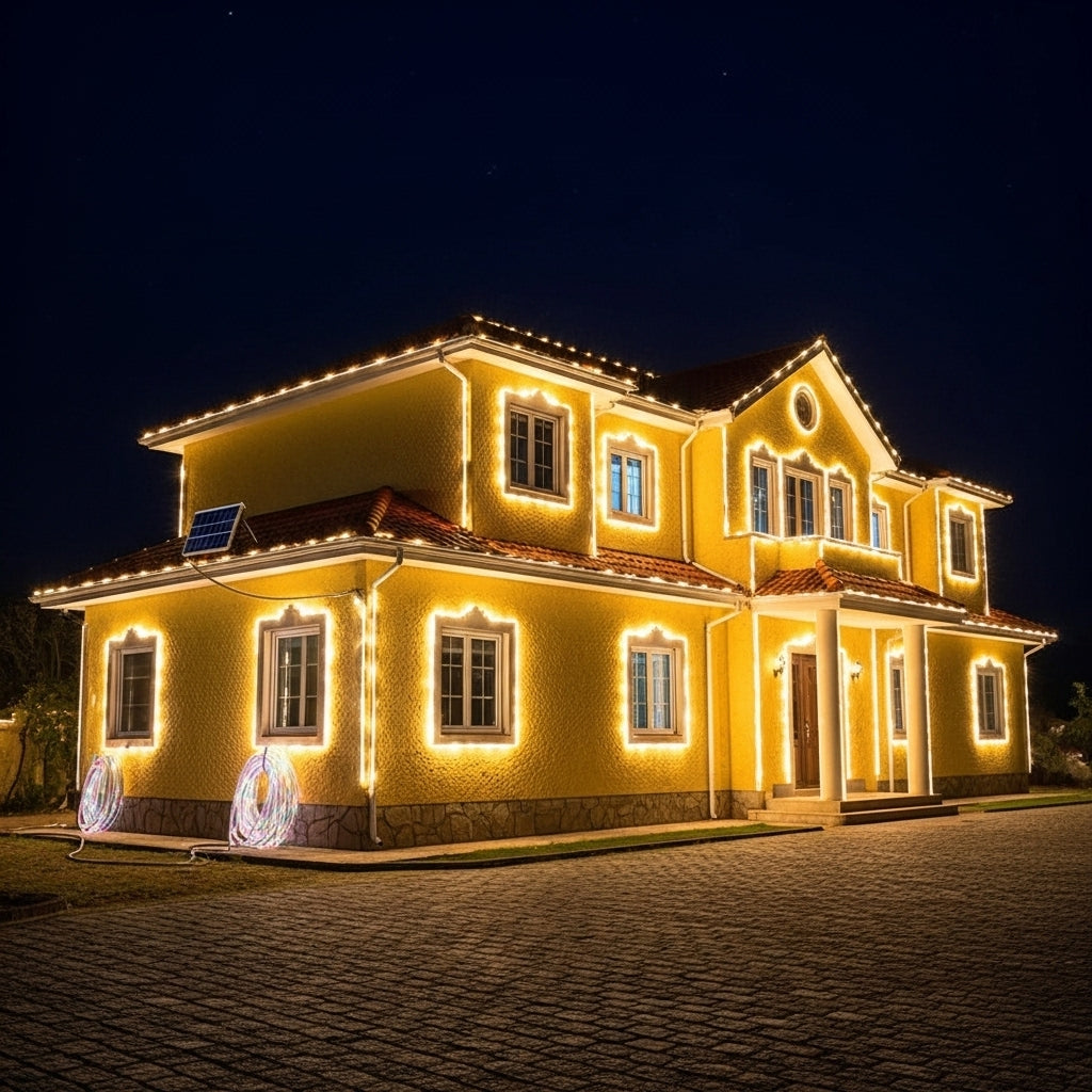 💡 Crea ambientes cálidos y festivos en terrazas, jardines o fachadas.