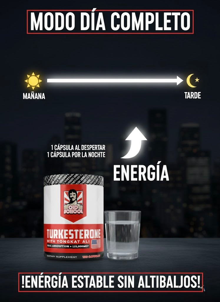 Turkesterone® + Tongkat Ali es la fórmula natural que recupera tu energía, vigor y rendimiento desde las primeras semanas: más fuerza para entrenar, mejor ánimo para el día y una vitalidad masculina que tu mujer lo va a notar.